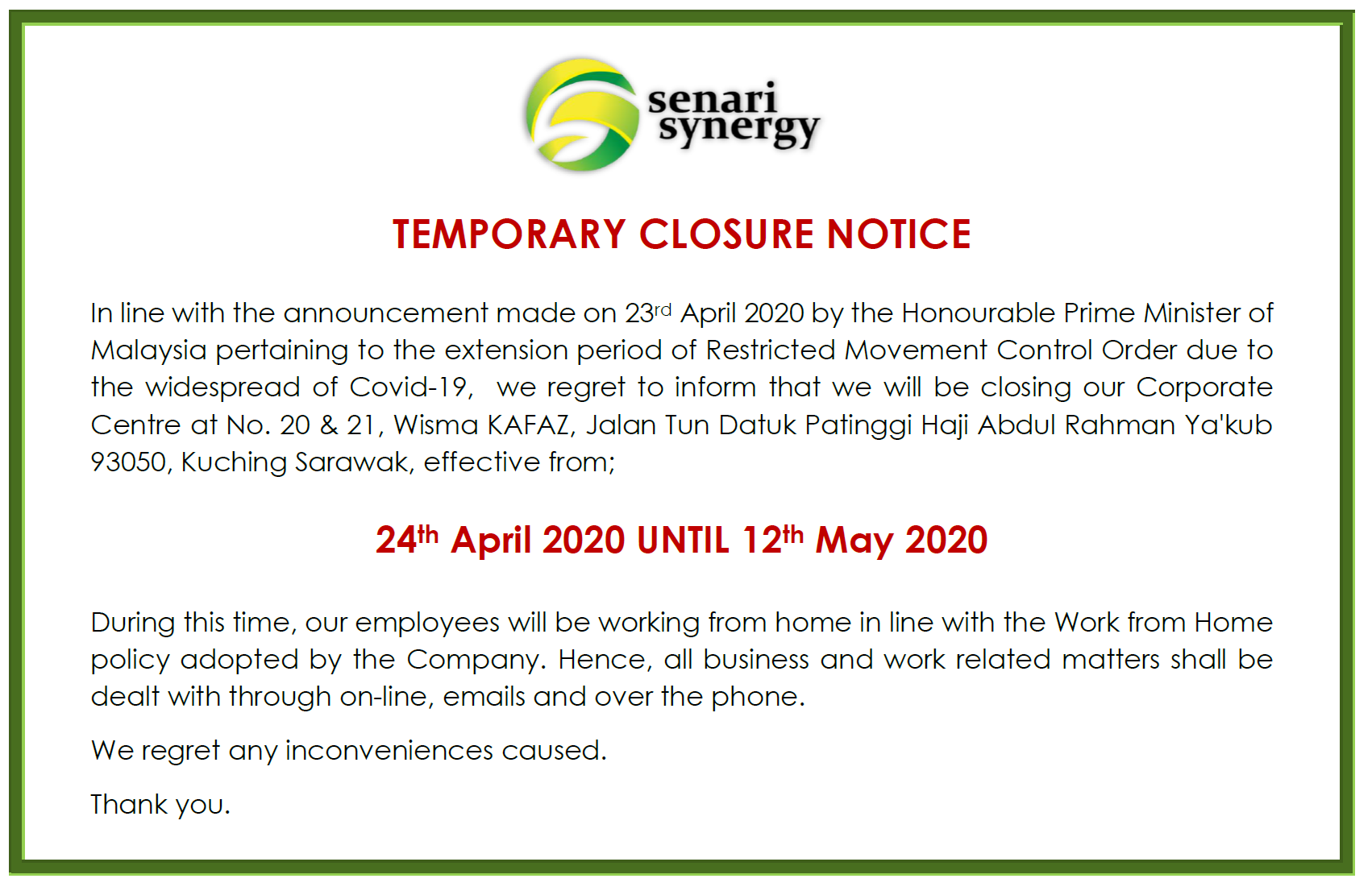 Temporary Closure Notice